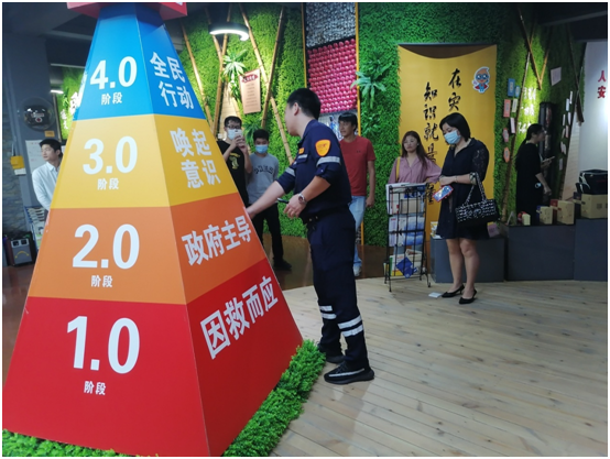南宁英博环境保护有限公司总经理陈朝阳详细的介绍了基地开展的特色“五维一体”基层应急管理干部能力提升、“双盲”应急演练、政企联动应急物资储备和创建综合减灾示范社区等解决方案,对南宁英博环境保护有限公司作为社会力量专注于基层应急管理的探索实践表示敬佩和支持。