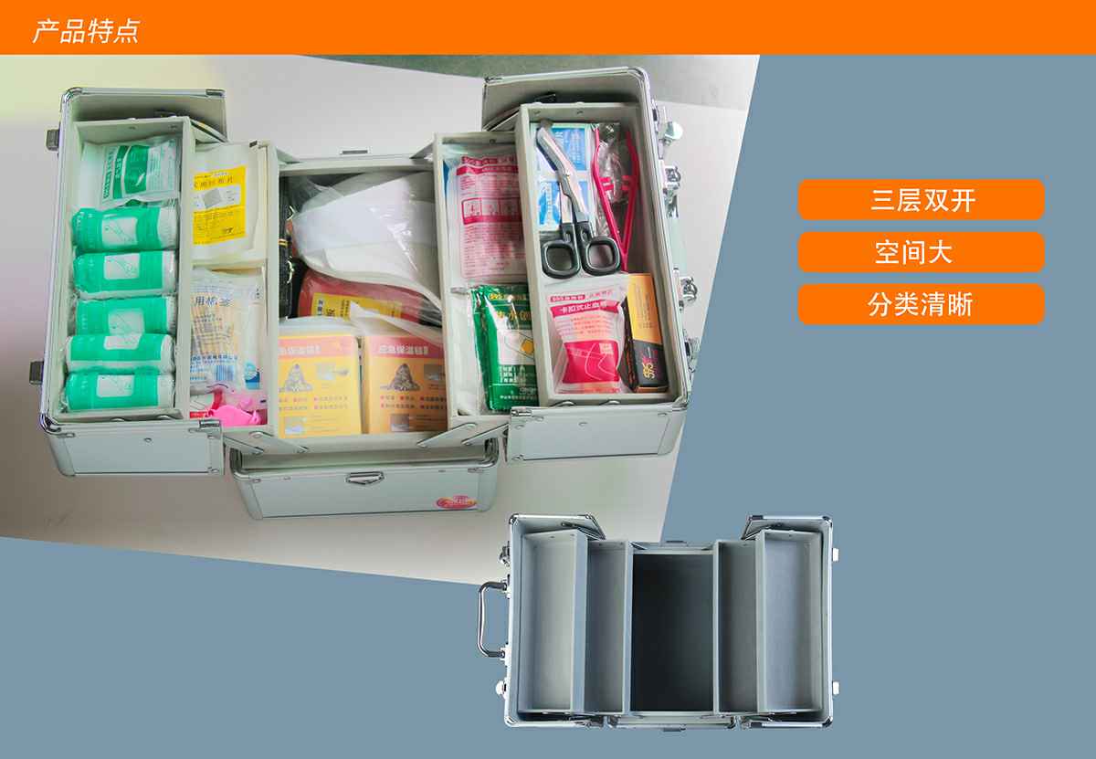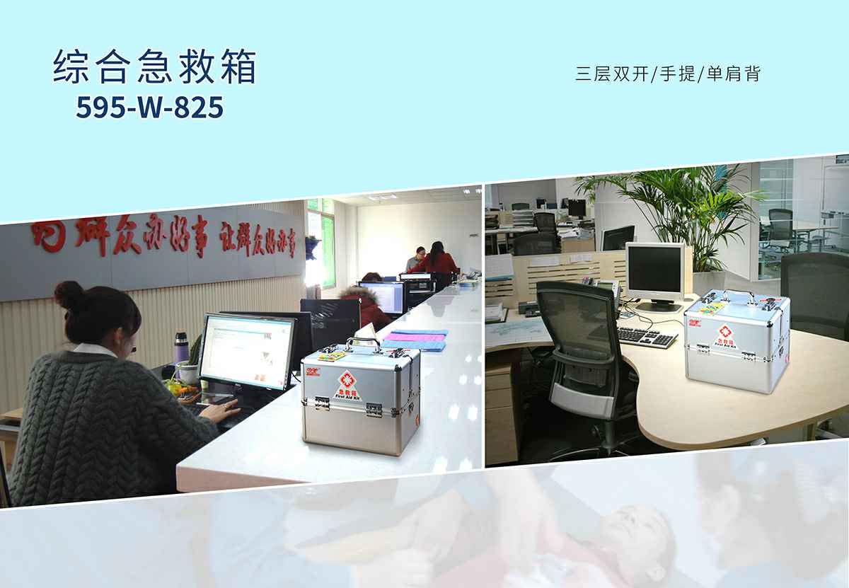 南宁英博环境保护有限公司综合急救箱,独特的箱体设计,适用于劳保、厂矿、公共场所、办公室、车间、学校、社区、健身房、实验室、建筑工地等人员密集的场所及防灾减灾等领域。